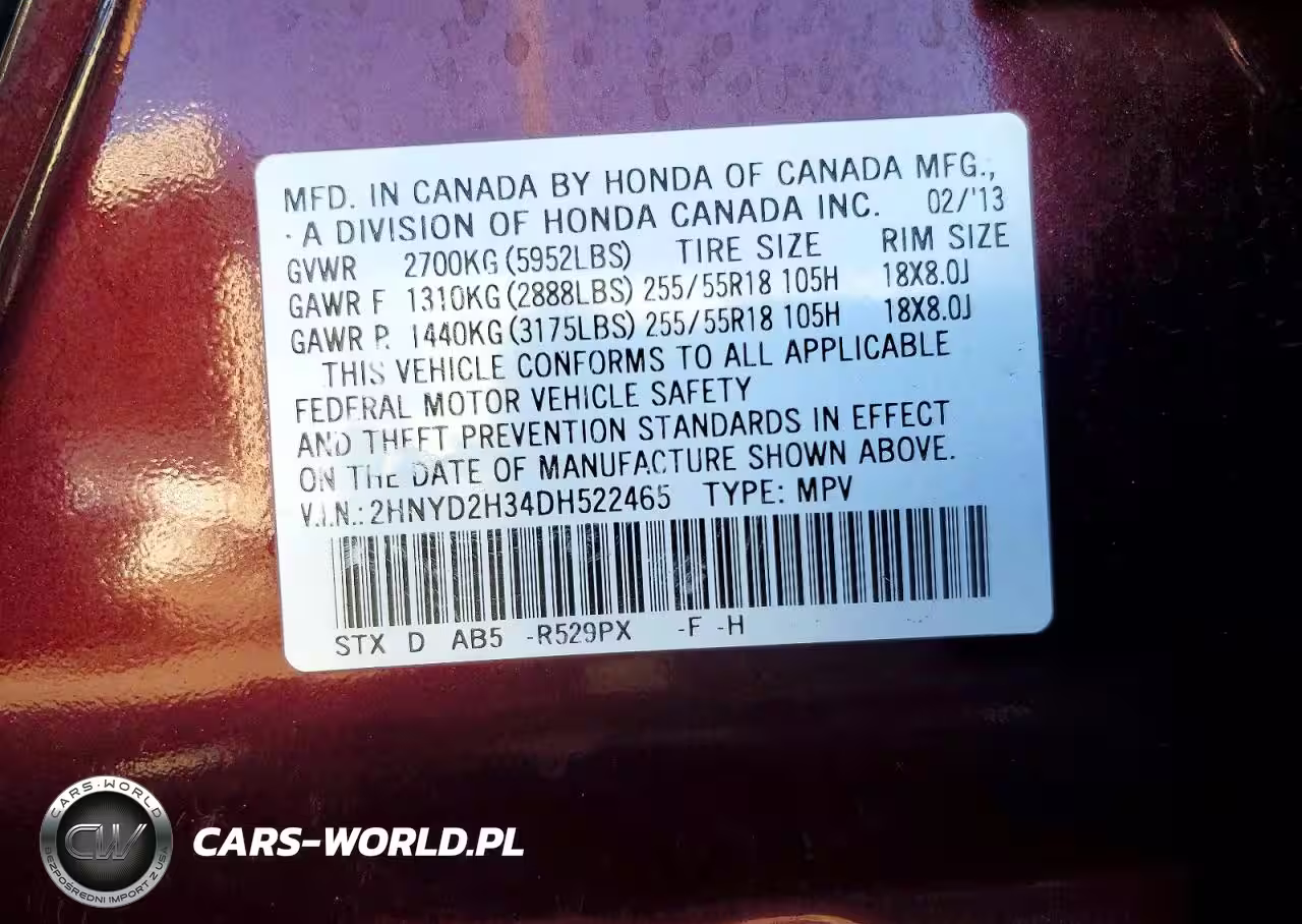 Copart Nr: C-99480585 VIN: 2HNYD2H34DH522465 Port: Houston, TX