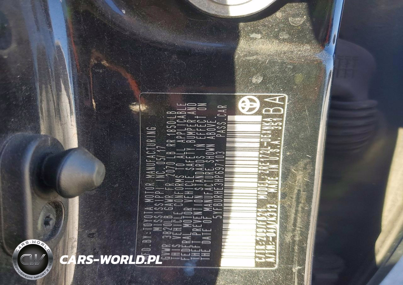 Copart Nr: C-99533185 VIN: 5YFBURHE3HP697103 Port: Los Angeles, CA