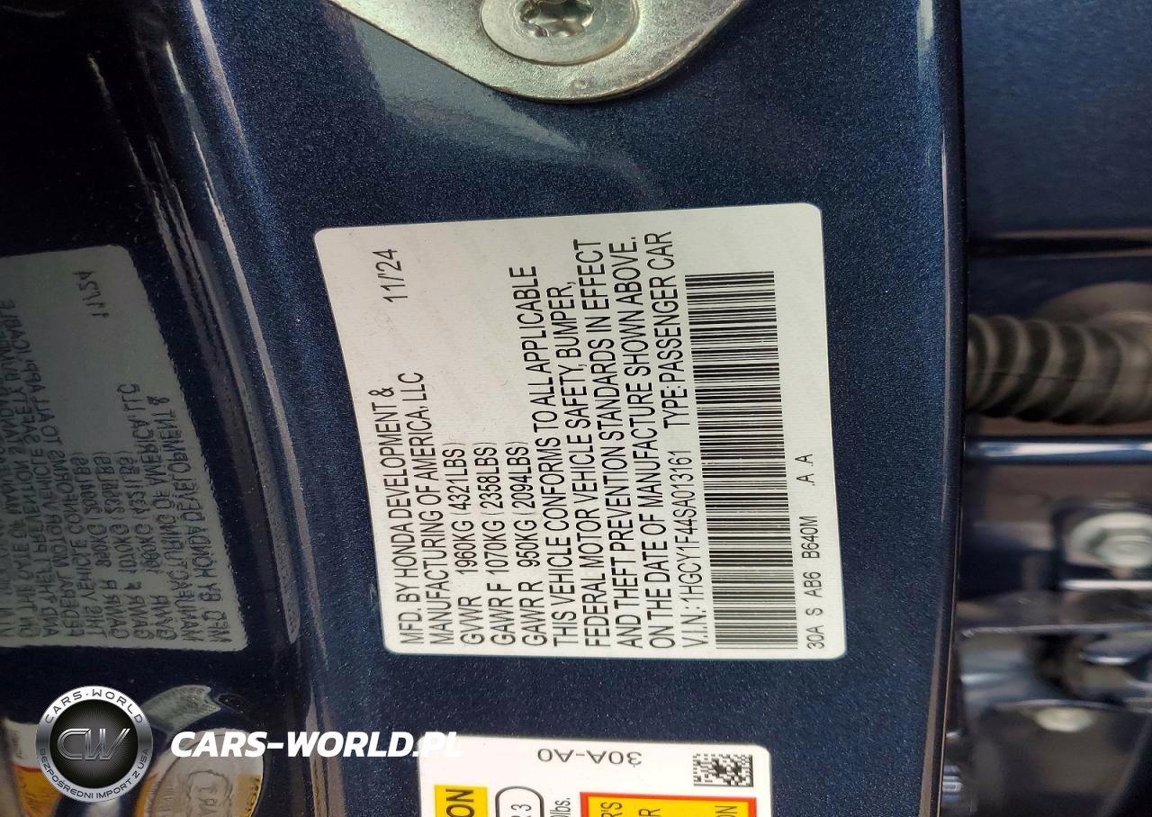 Copart Nr: C-99557925 VIN: 1HGCY1F44SA013161 Port: Elizabeth, NJ