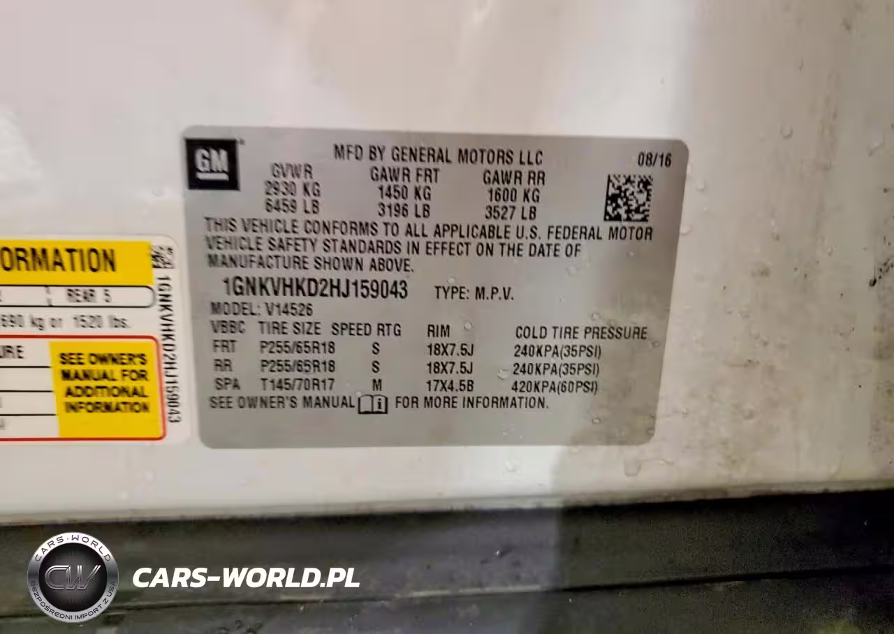 Copart Nr: C-99616925 VIN: 1GNKVHKD2HJ159043 Port: Elizabeth, NJ