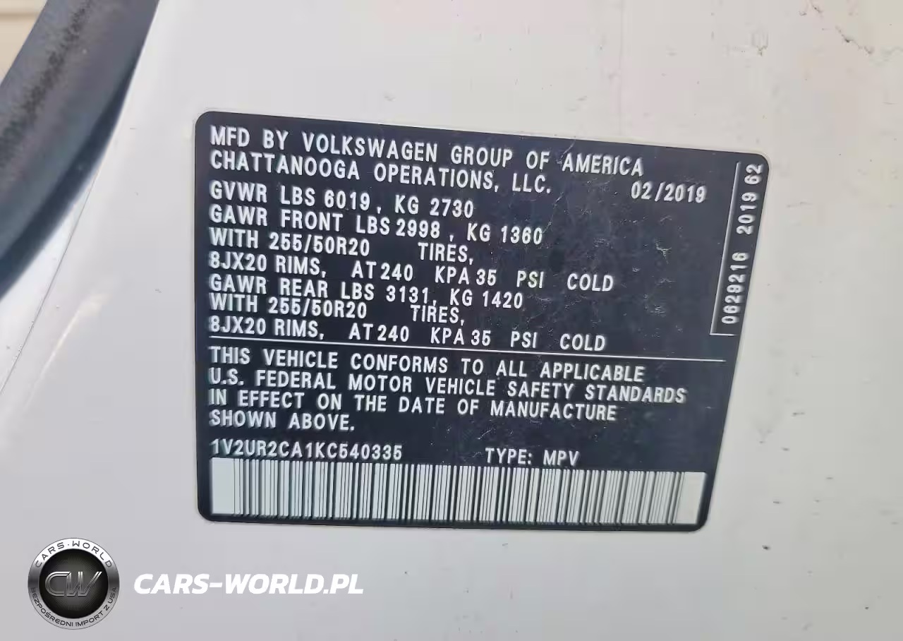 Copart Nr: C-99626755 VIN: 1V2UR2CA1KC540335 Port: Indianapolis, IN