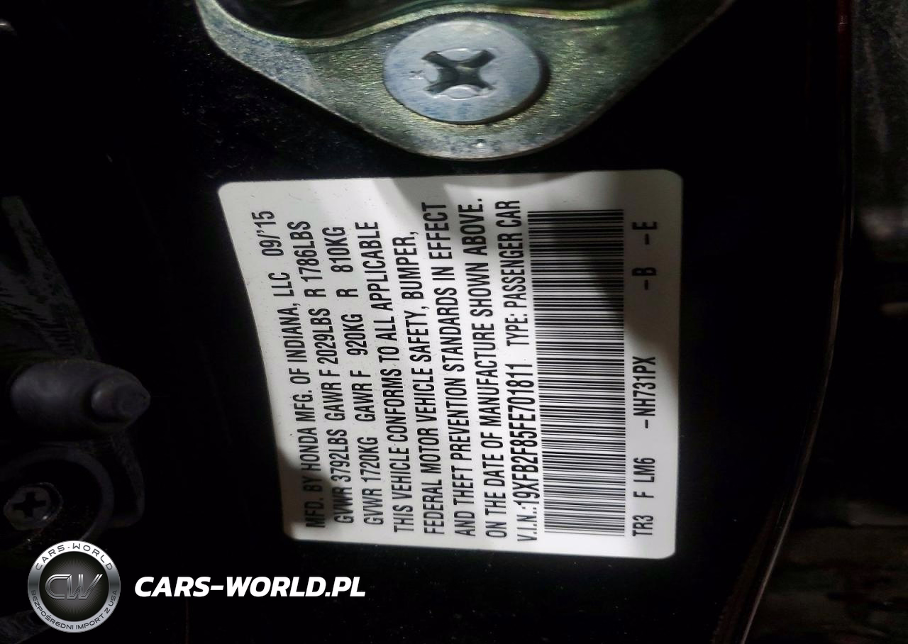 Copart Nr: C-99643675 VIN: 19XFB2F85FE701811 Port: Elizabeth, NJ