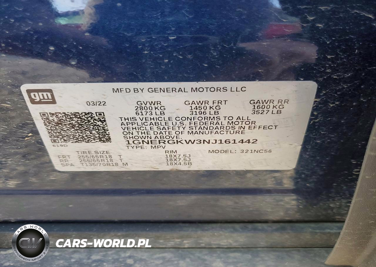 Copart Nr: C-99645805 VIN: 1GNERGKW3NJ161442 Port: Indianapolis, IN