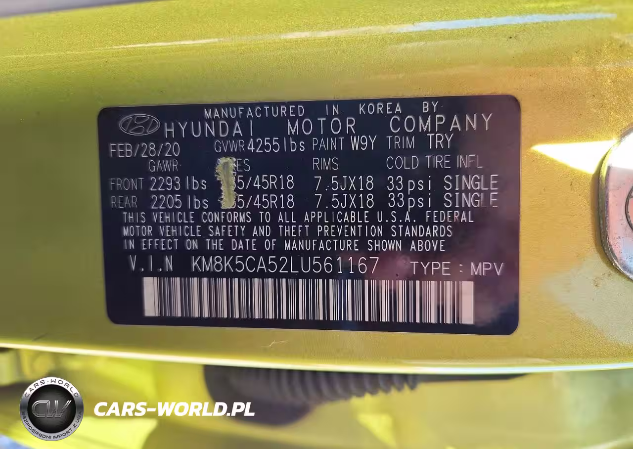 Copart Nr: C-99708095 VIN: KM8K5CA52LU561167 Port: Indianapolis, IN