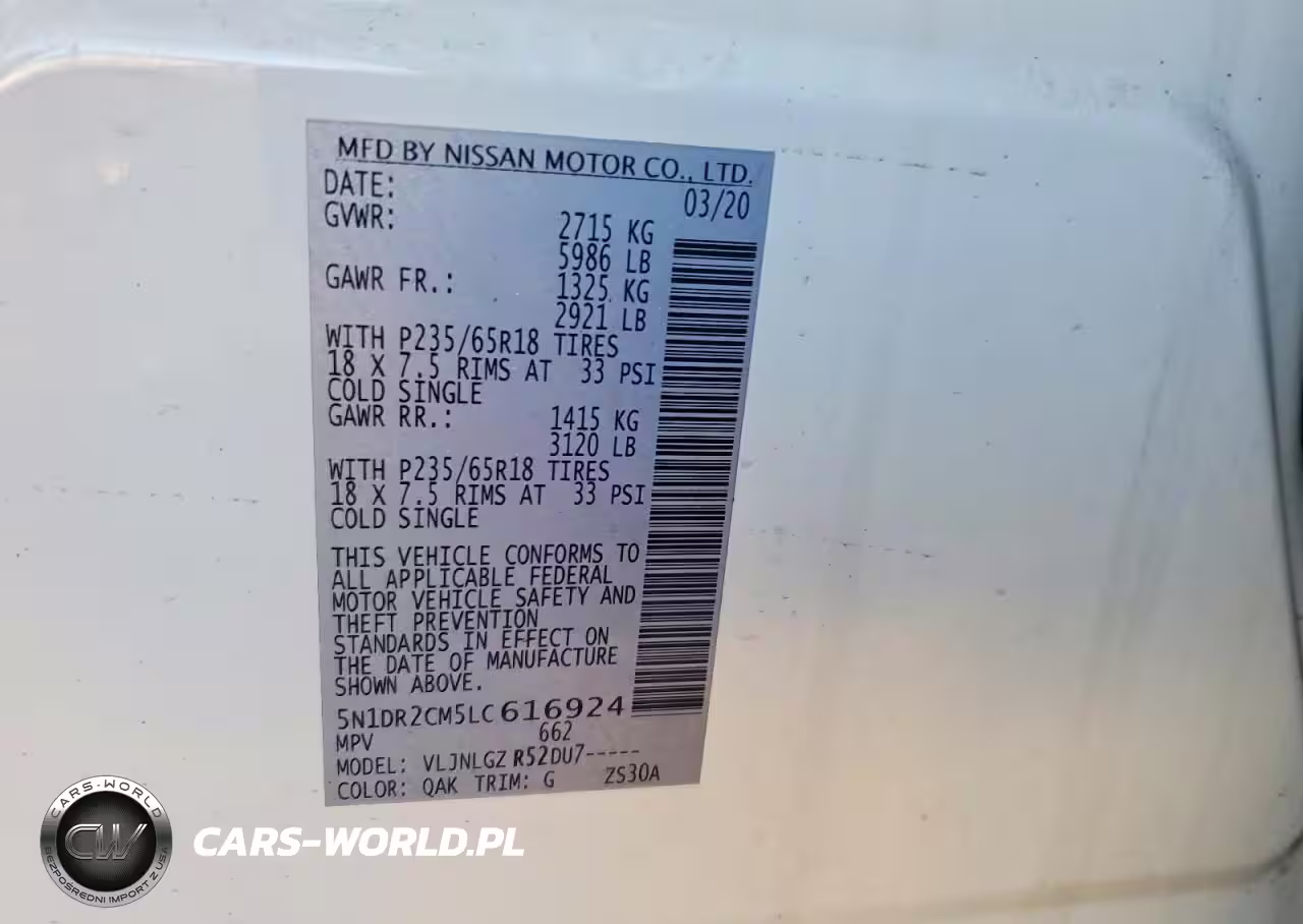 Copart Nr: C-99737435 VIN: 5N1DR2CM5LC616924 Port: Elizabeth, NJ