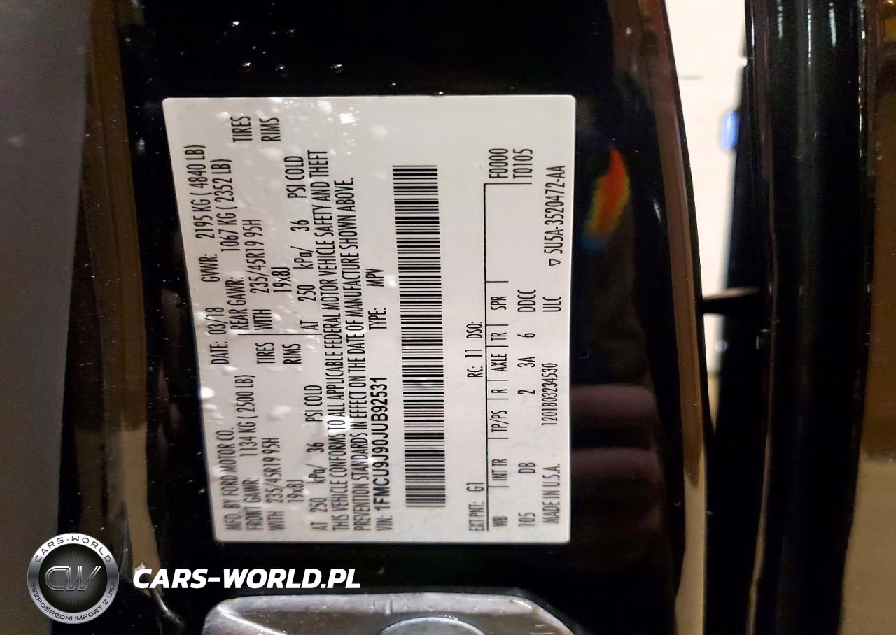 Copart Nr: C-99812175 VIN: 1FMCU9J90JUB92531 Port: Elizabeth, NJ