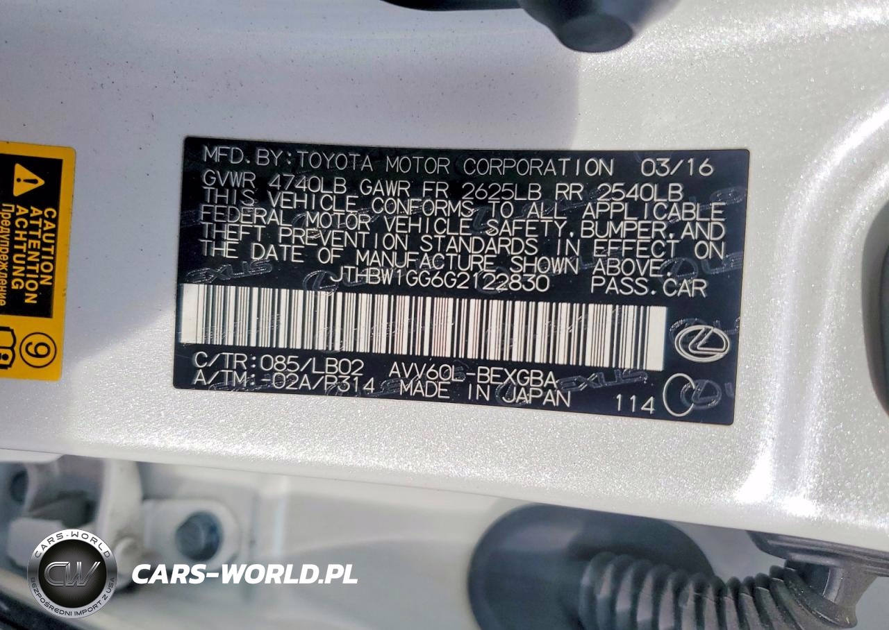 Copart Nr: C-99938195 VIN: JTHBW1GG6G2122830 Port: Los Angeles, CA