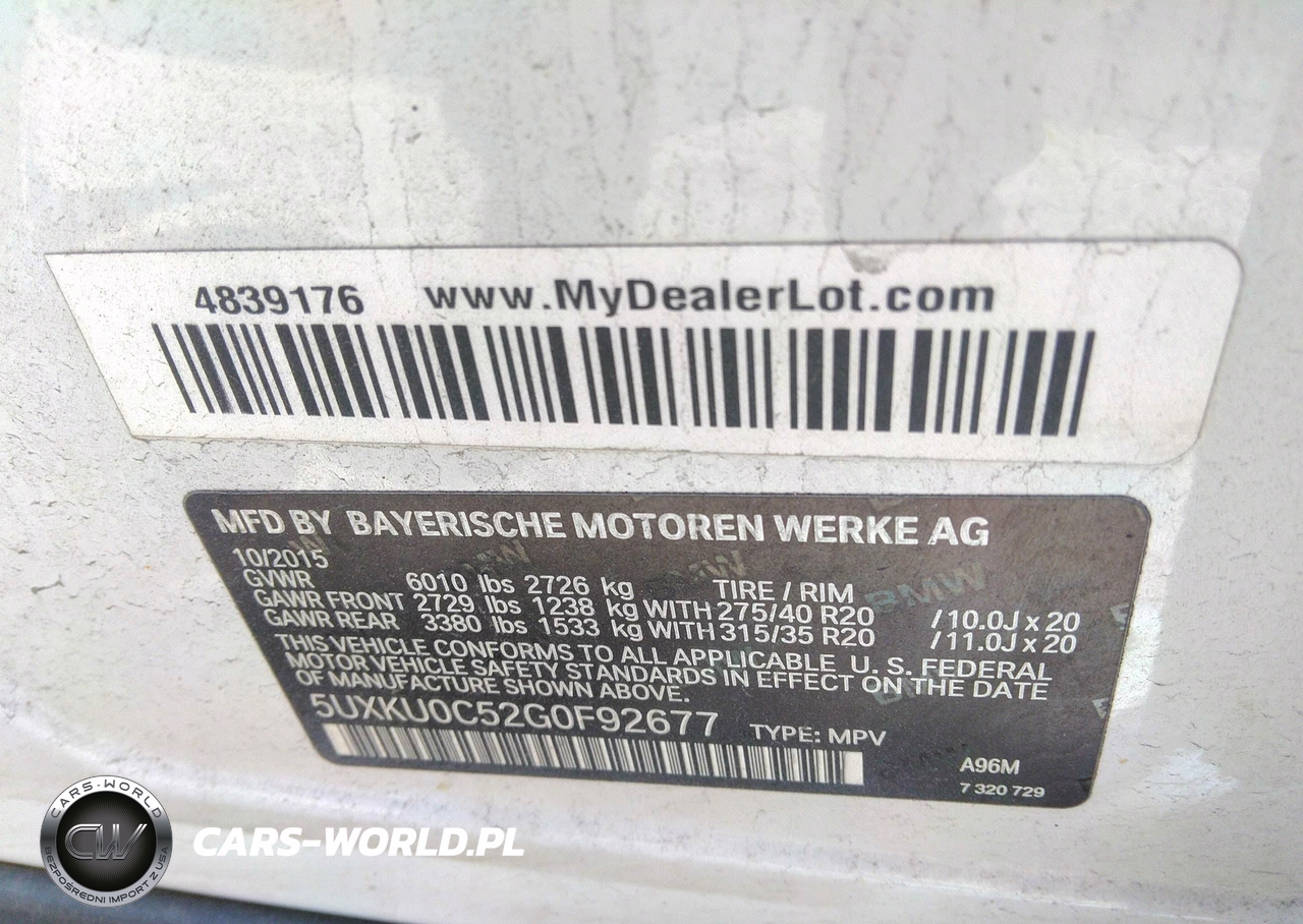 IAAI Nr: I-36926516 VIN: 5UXKU0C52G0F92677 Port: Indianapolis, IN