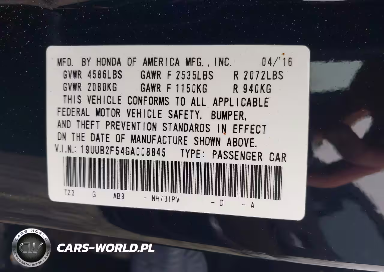 IAAI Nr: I-38595799 VIN: 19UUB2F54GA008845 Port: Savannah, GA