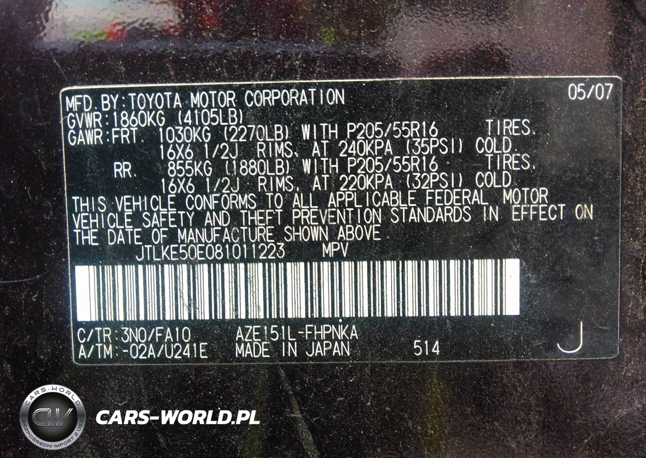 IAAI Nr: I-40061325 VIN: JTLKE50E081011223 Port: Savannah, GA