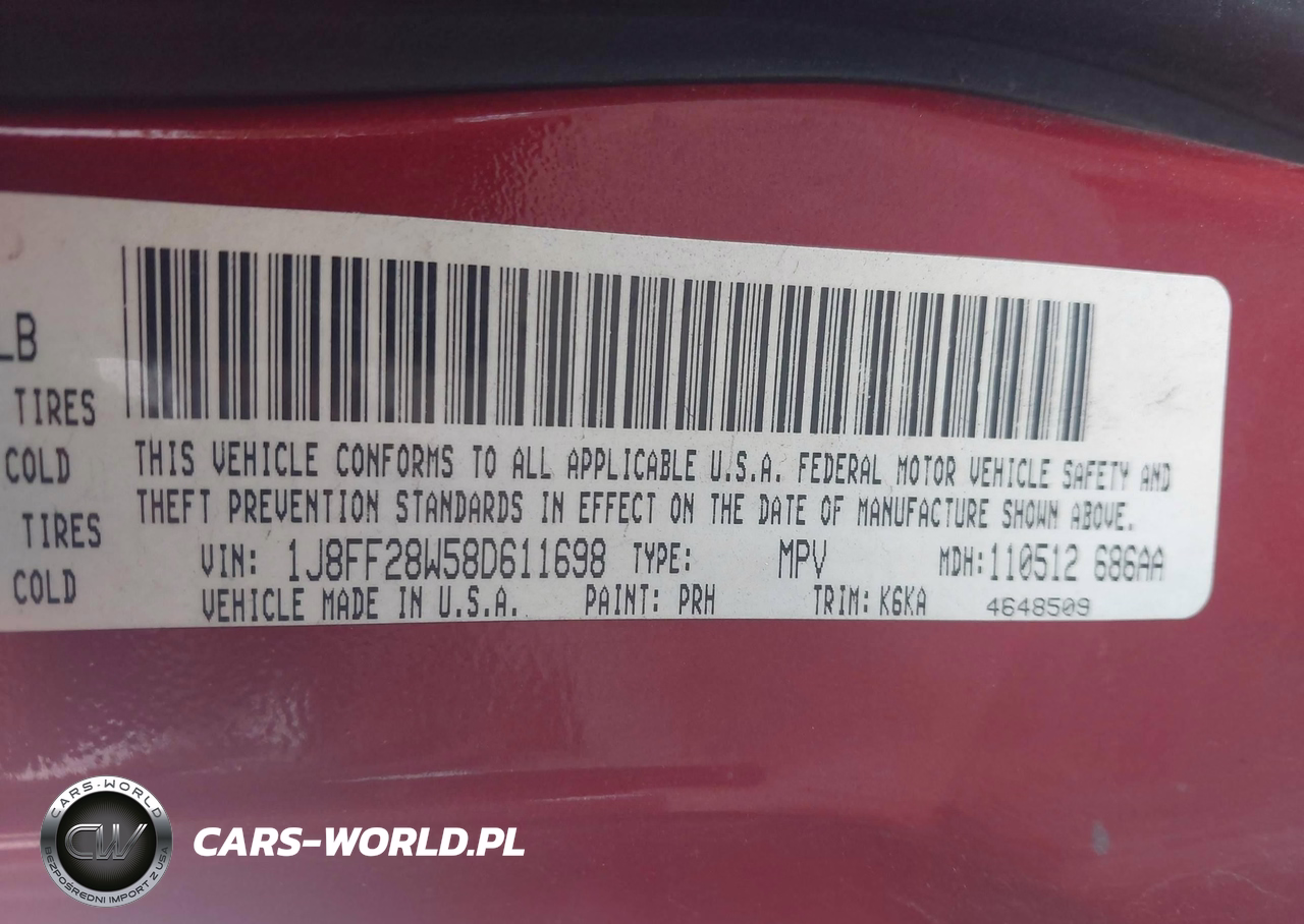 IAAI Nr: I-40062226 VIN: 1J8FF28W58D611698 Port: Elizabeth, NJ