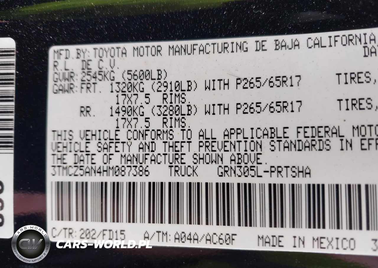 IAAI Nr: I-40063333 VIN: 3TMCZ5AN4HM087386 Port: Elizabeth, NJ