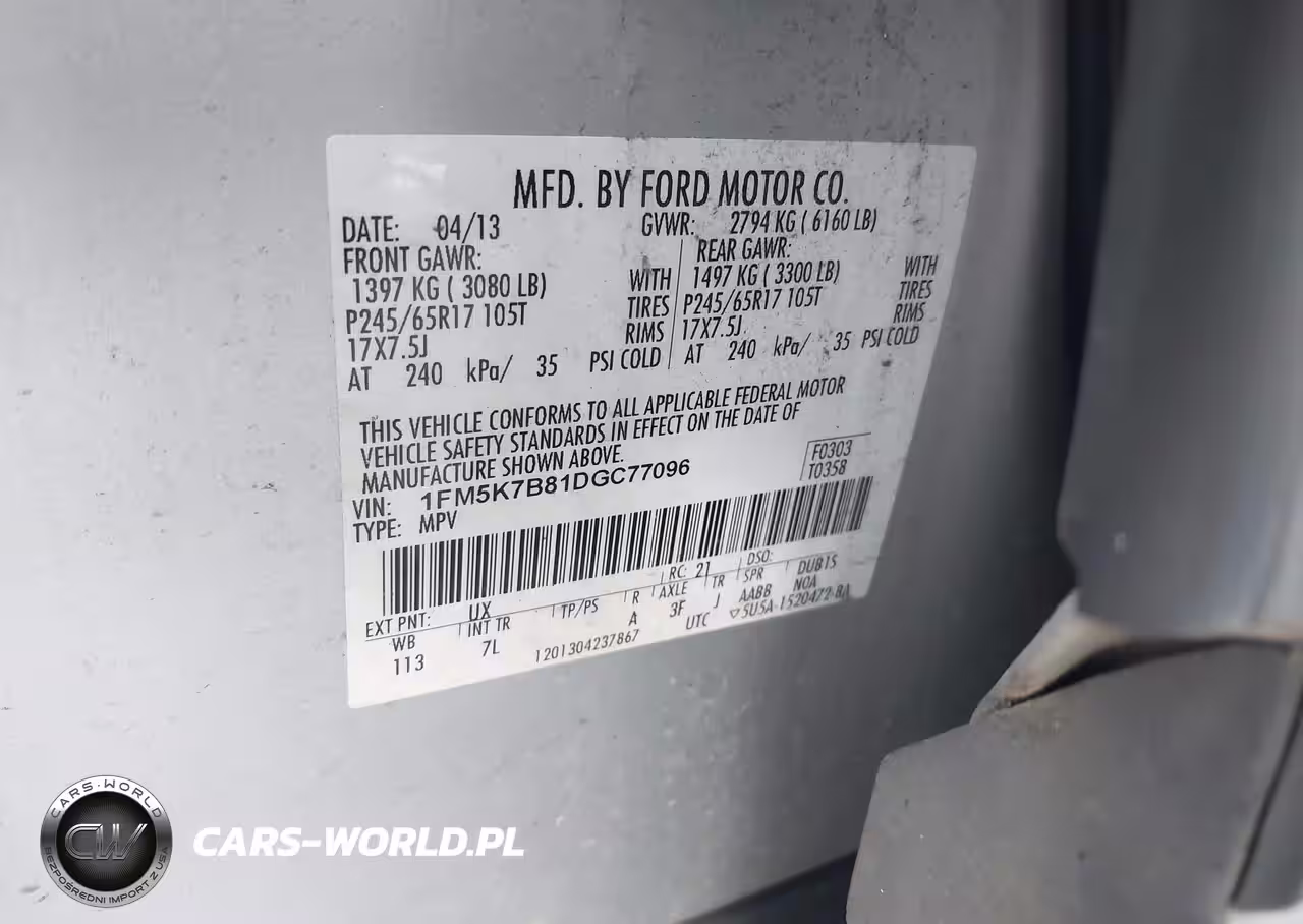 IAAI Nr: I-40244042 VIN: 1FM5K7B81DGC77096 Port: Savannah, GA
