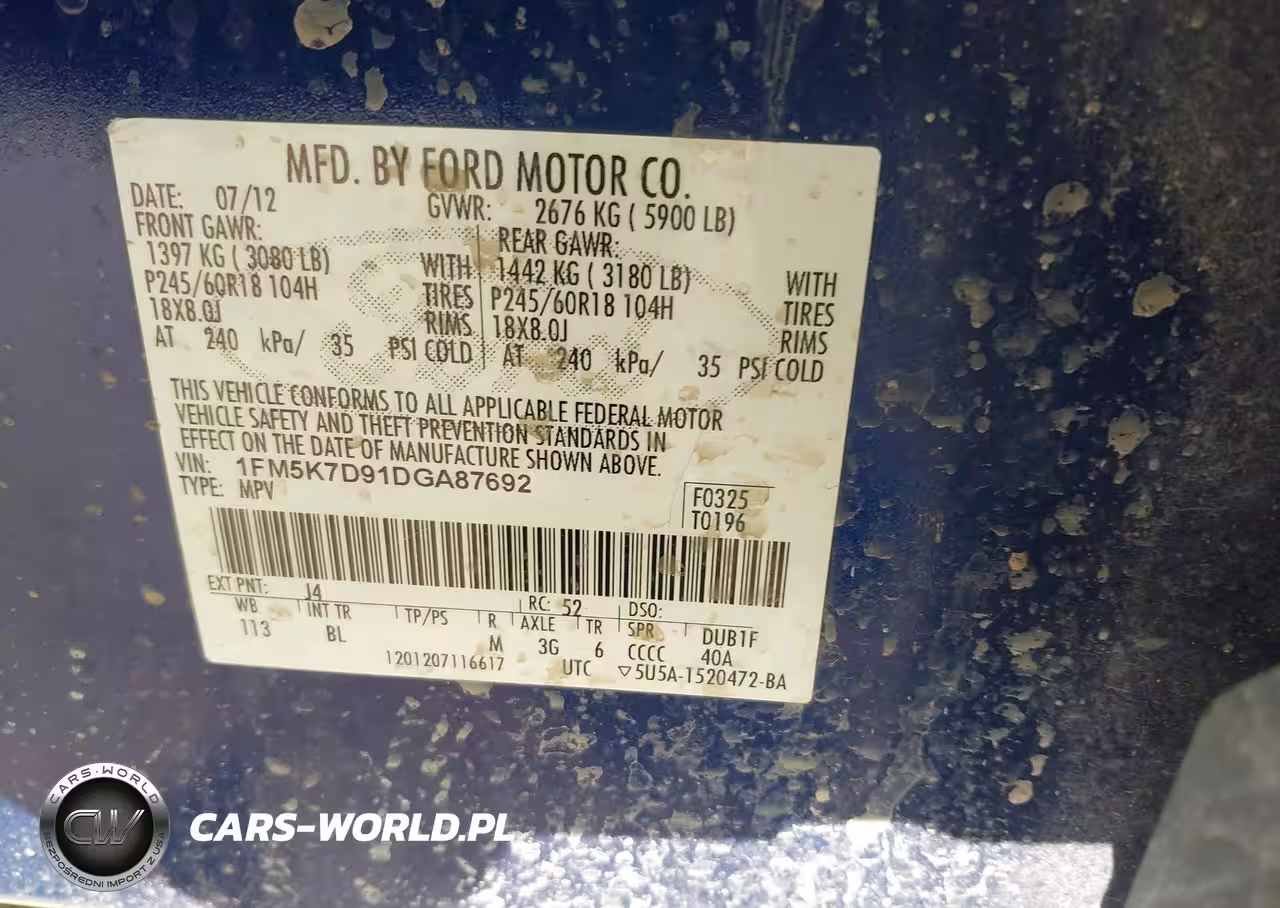IAAI Nr: I-40570680 VIN: 1FM5K7D91DGA87692 Port: Houston, TX