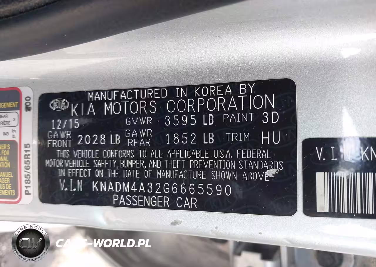 IAAI Nr: I-40961436 VIN: KNADM4A32G6665590 Port: Elizabeth, NJ