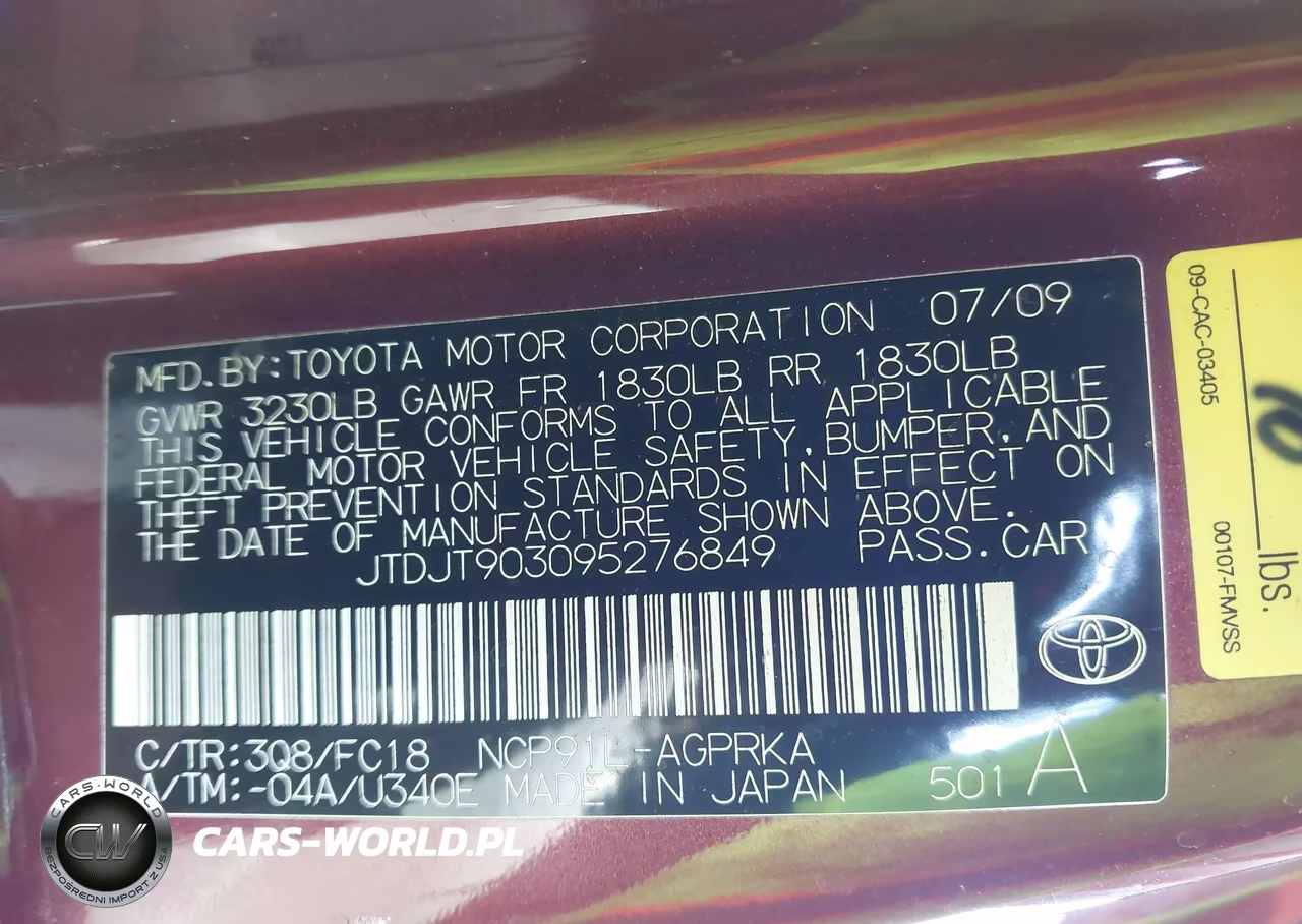 IAAI Nr: I-41437955 VIN: JTDJT903095276849 Port: Los Angeles, CA