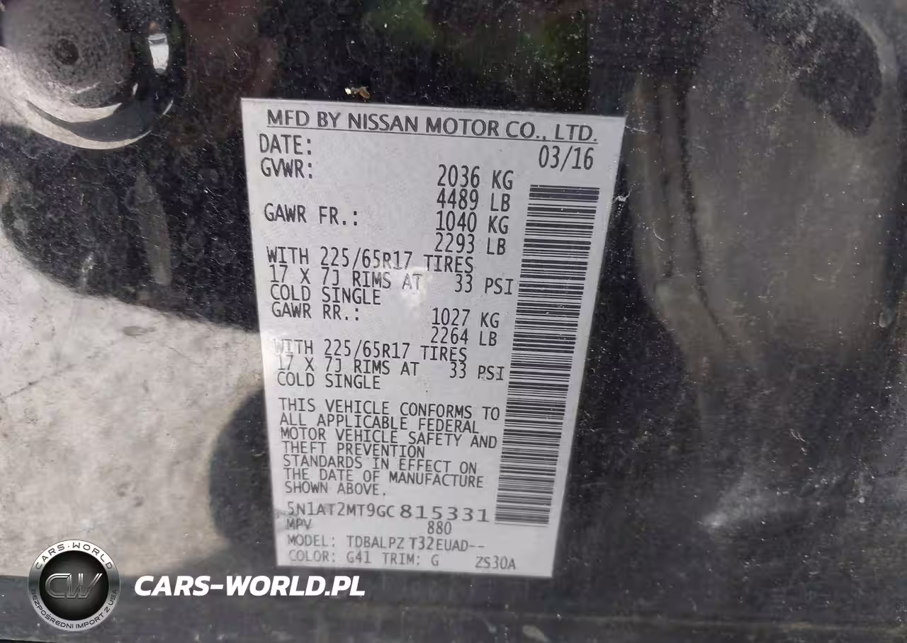 IAAI Nr: I-41963069 VIN: 5N1AT2MT9GC815331 Port: Savannah, GA