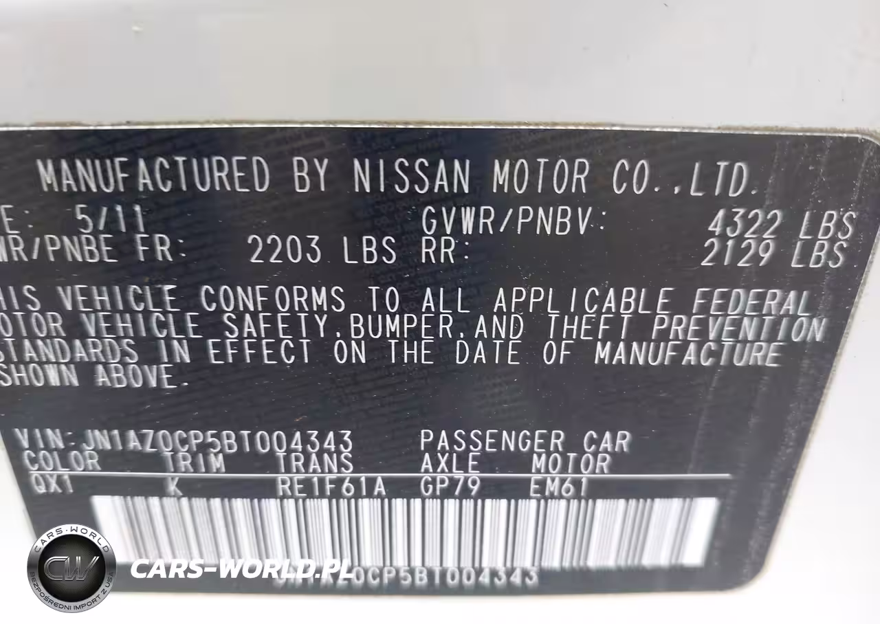 IAAI Nr: I-42265195 VIN: JN1AZ0CP5BT004343 Port: Los Angeles, CA