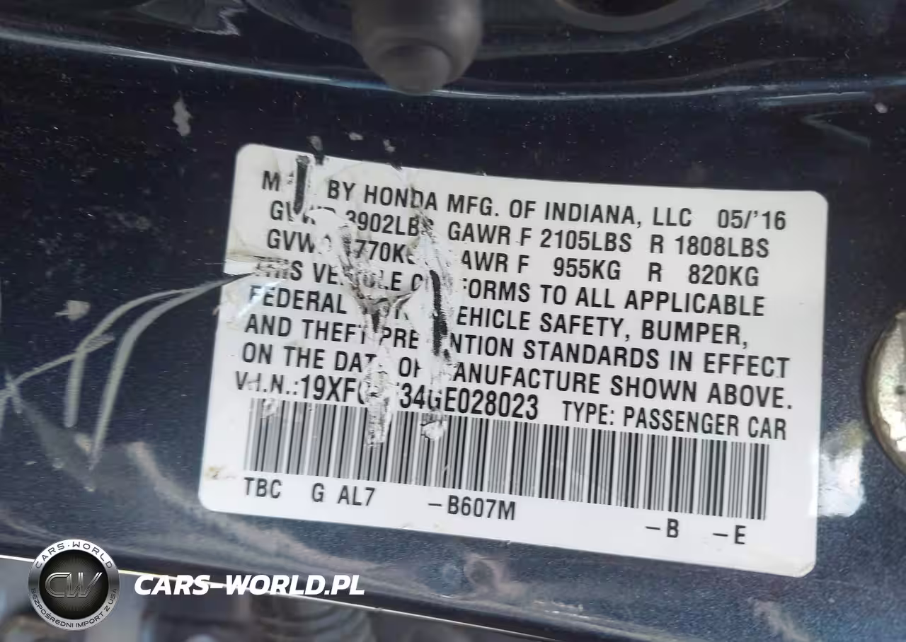 IAAI Nr: I-42709694 VIN: 19XFC1F34GE028023 Port: Savannah, GA
