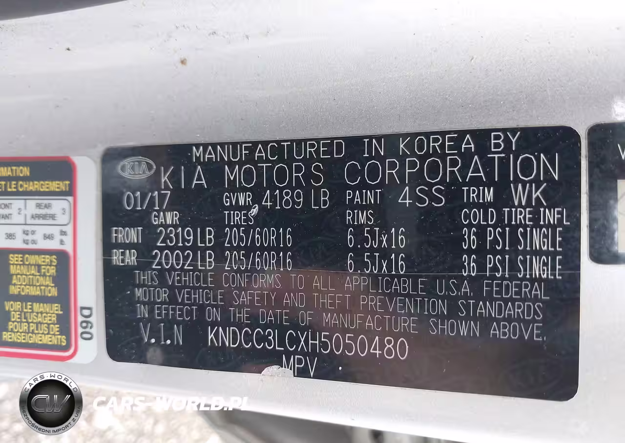 IAAI Nr: I-42752166 VIN: KNDCC3LCXH5050480 Port: Indianapolis, IN