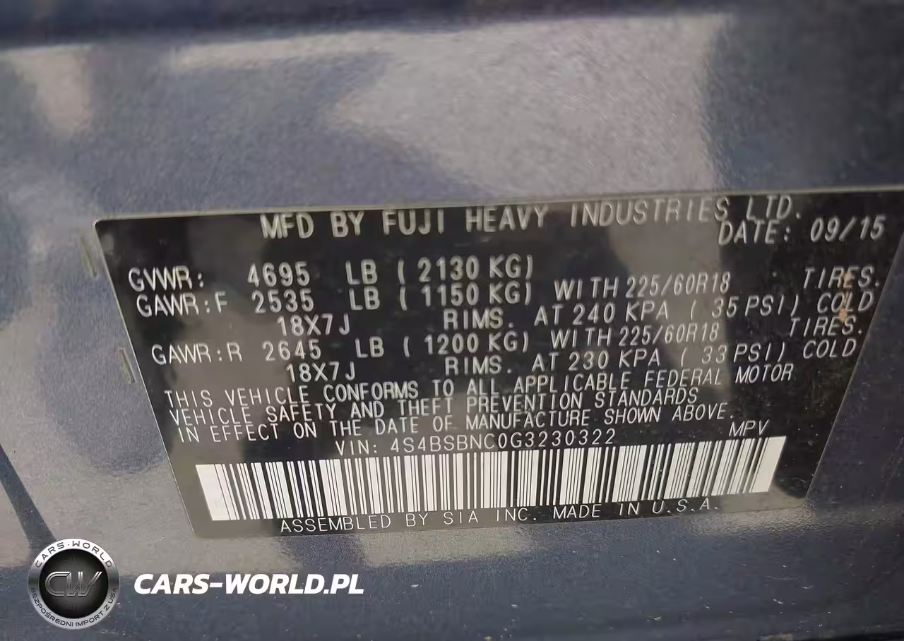 IAAI Nr: I-42766072 VIN: 4S4BSBNC0G3230322 Port: Houston, TX