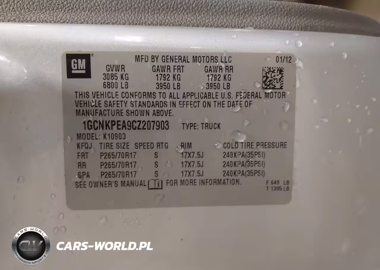 IAAI Nr: I-42812474 VIN: 1GCNKPEA9CZ207903 Port: Elizabeth, NJ
