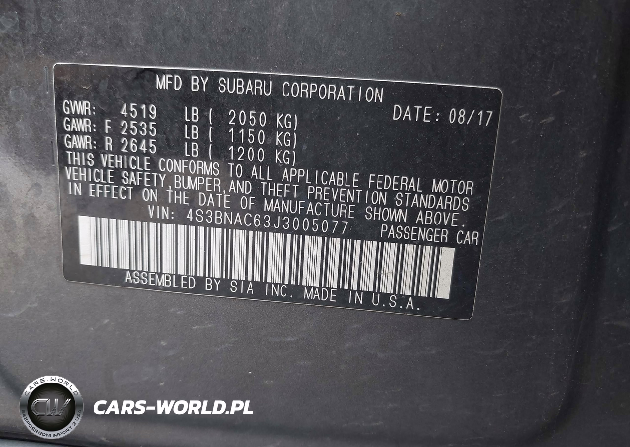 IAAI Nr: I-42978607 VIN: 4S3BNAC63J3005077 Port: Los Angeles, CA