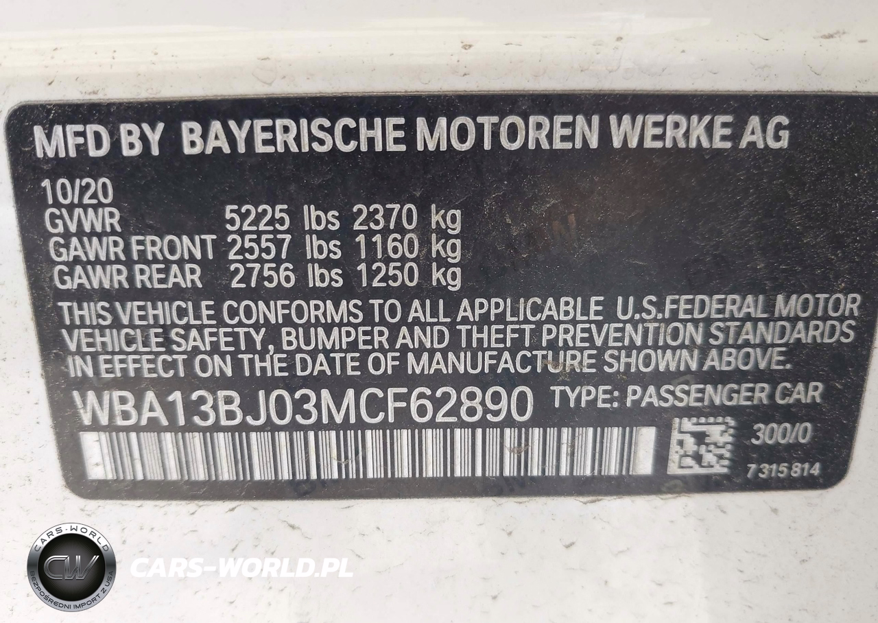 IAAI Nr: I-42984916 VIN: WBA13BJ03MCF62890 Port: Elizabeth, NJ