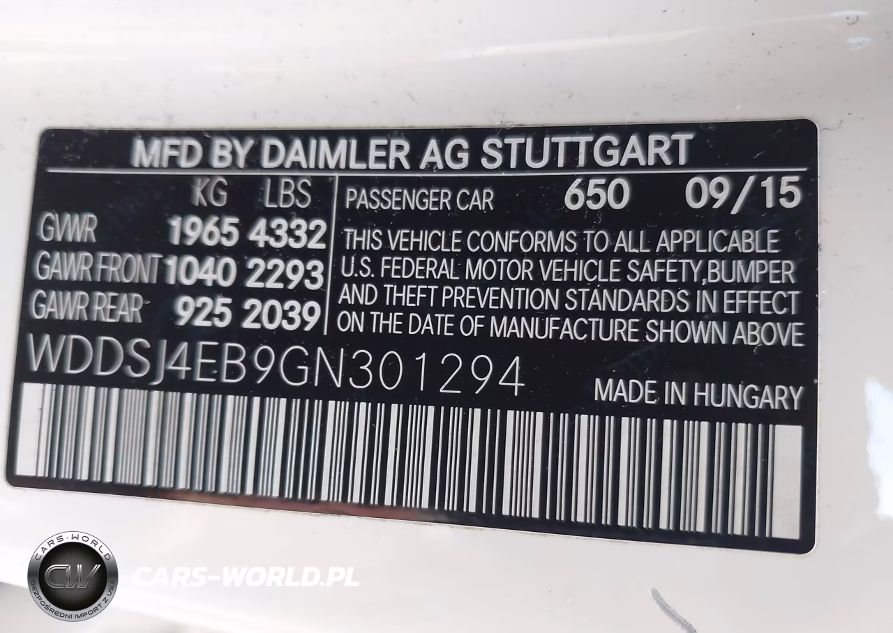 IAAI Nr: I-43009987 VIN: WDDSJ4EB9GN301294 Port: Savannah, GA