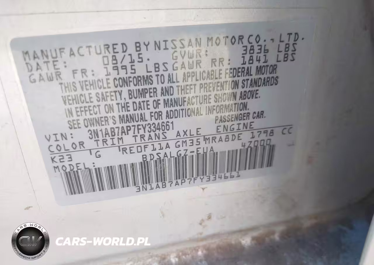 IAAI Nr: I-43035141 VIN: 3N1AB7AP7FY334661 Port: Los Angeles, CA