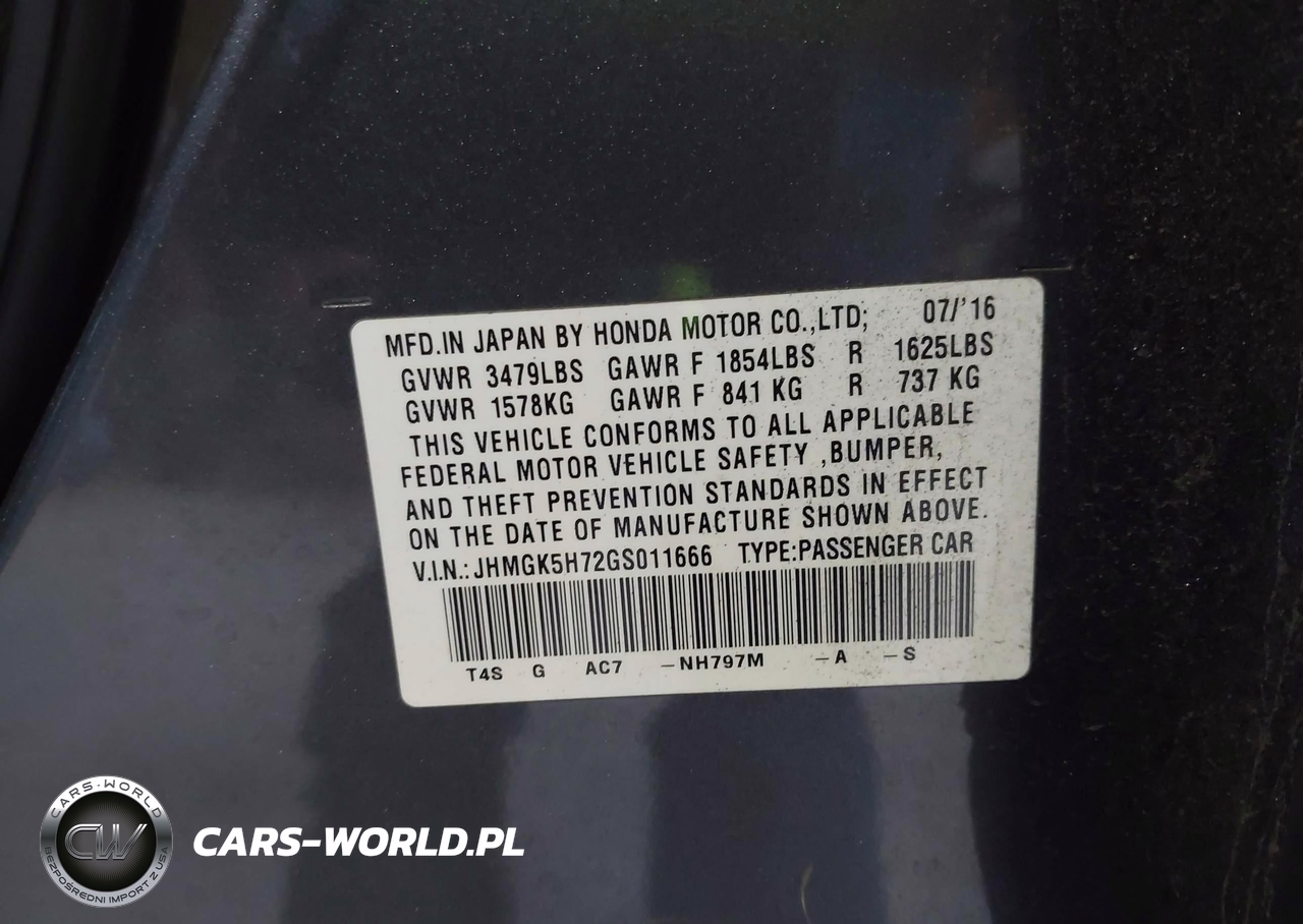 IAAI Nr: I-43051139 VIN: JHMGK5H72GS011666 Port: Elizabeth, NJ