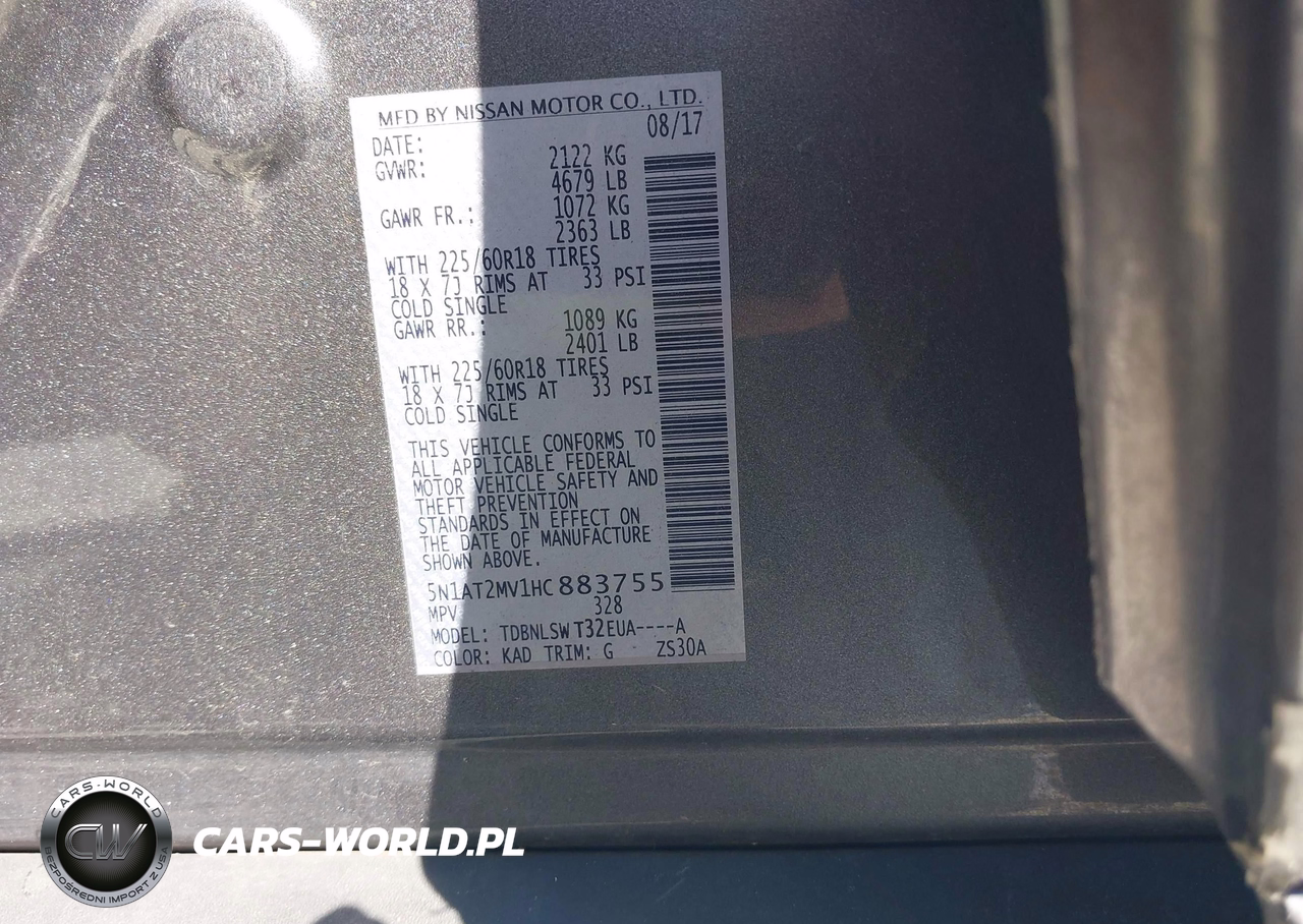 IAAI Nr: I-43079648 VIN: 5N1AT2MV1HC883755 Port: Elizabeth, NJ