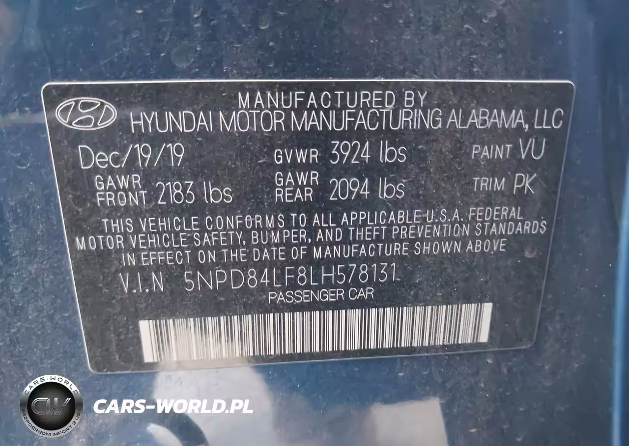 IAAI Nr: I-43164265 VIN: 5NPD84LF8LH578131 Port: Los Angeles, CA