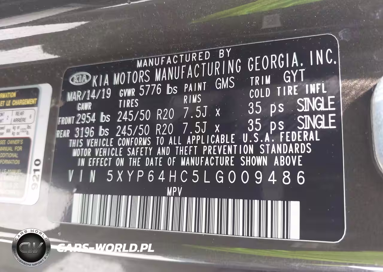 IAAI Nr: I-43184620 VIN: 5XYP64HC5LG009486 Port: Savannah, GA