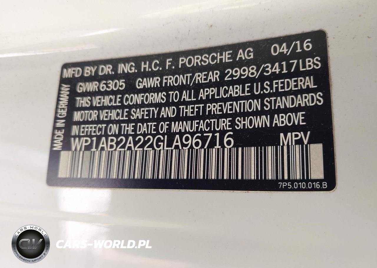 IAAI Nr: I-43221751 VIN: WP1AB2A22GLA96716 Port: Elizabeth, NJ