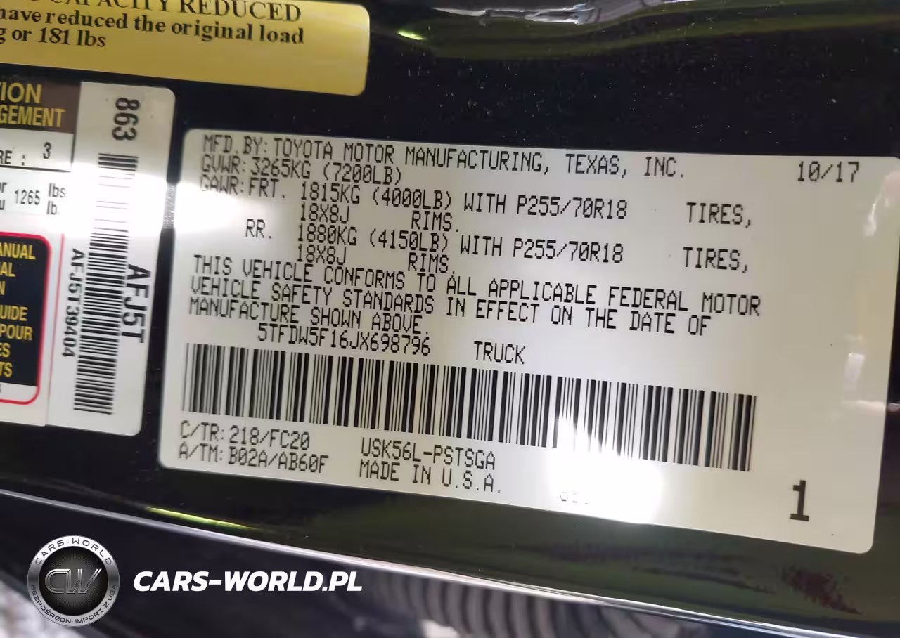 IAAI Nr: I-43236108 VIN: 5TFDW5F16JX698796 Port: Houston, TX