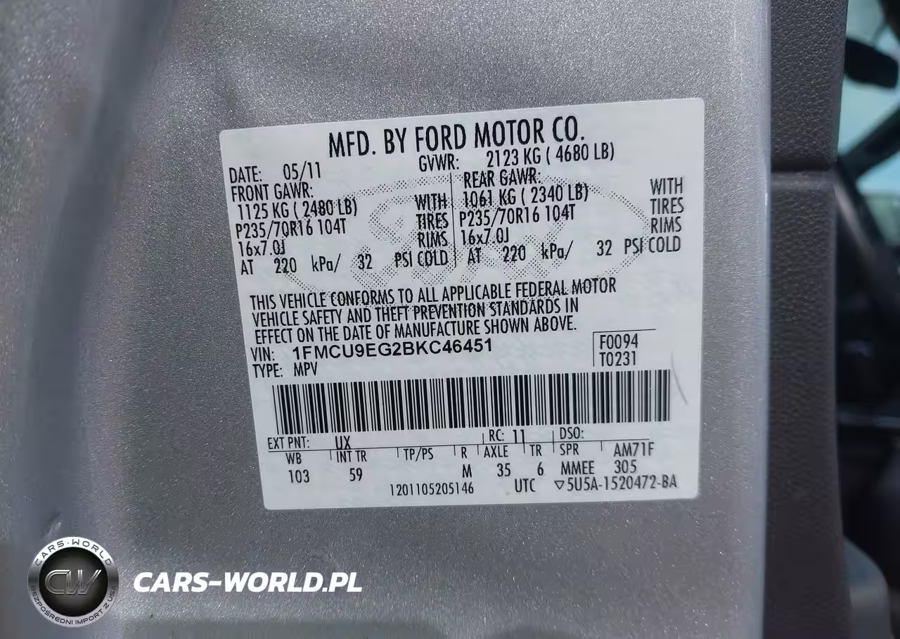 IAAI Nr: I-43246816 VIN: 1FMCU9EG2BKC46451 Port: Elizabeth, NJ