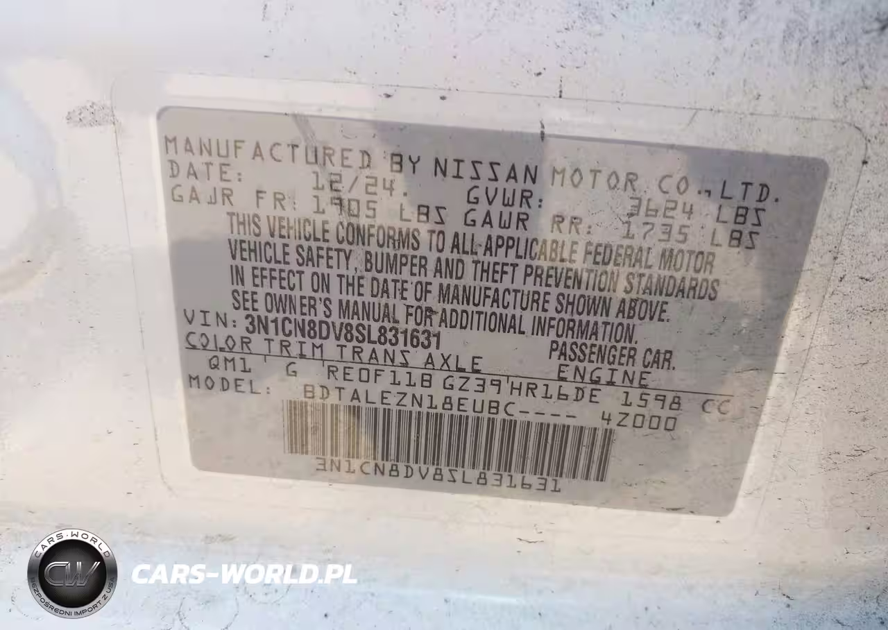 IAAI Nr: I-43255094 VIN: 3N1CN8DV8SL831631 Port: Savannah, GA