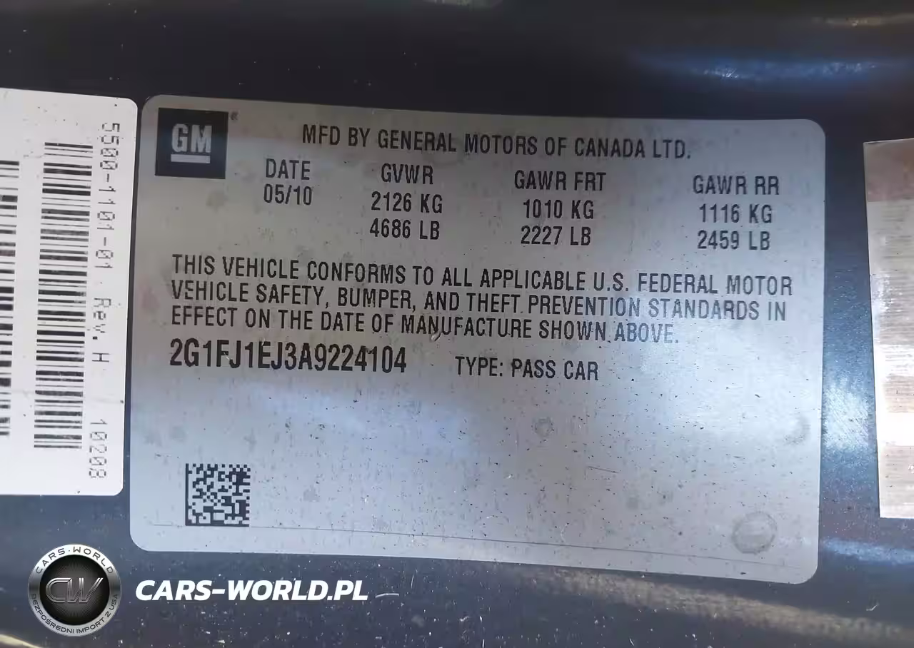 IAAI Nr: I-43336686 VIN: 2G1FJ1EJ3A9224104 Port: Los Angeles, CA