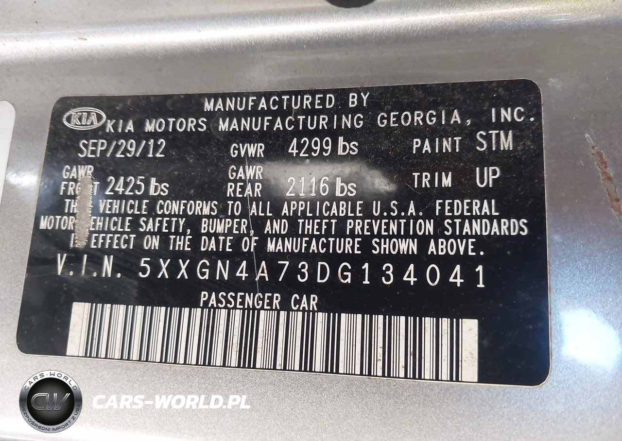 IAAI Nr: I-43354654 VIN: 5XXGN4A73DG134041 Port: Savannah, GA