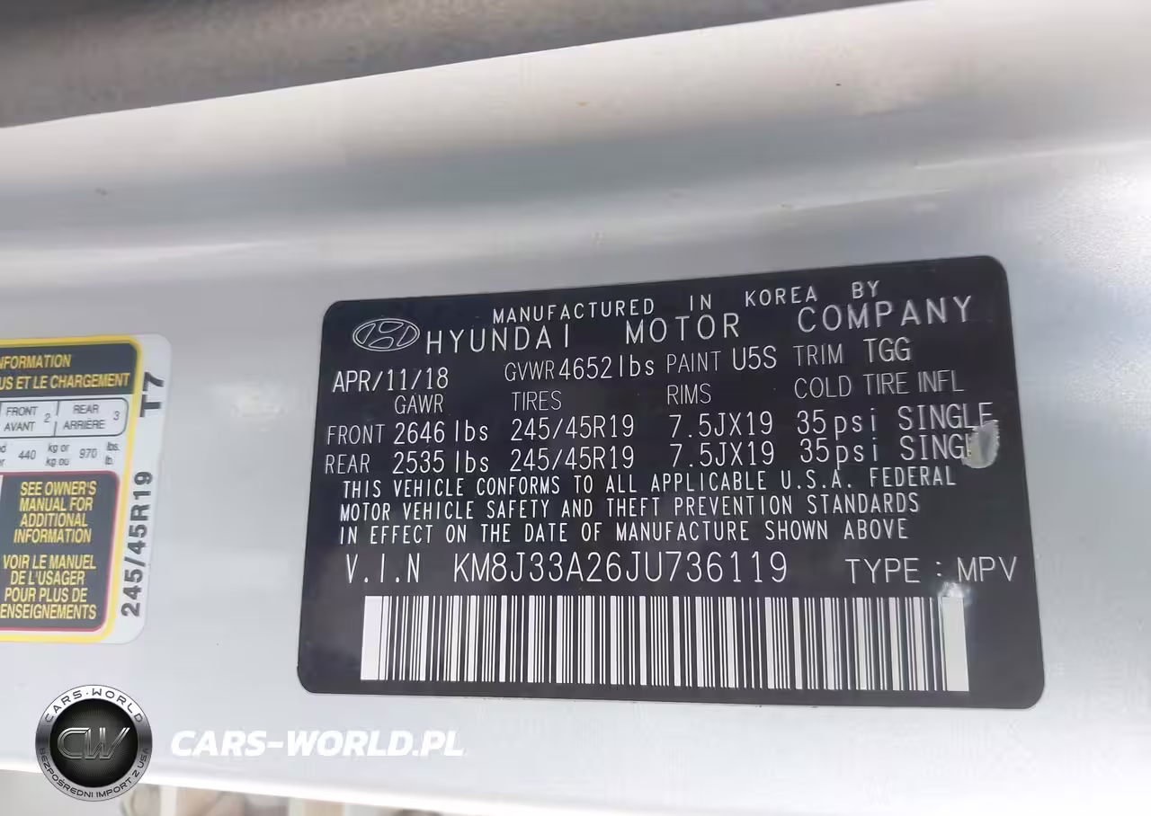 IAAI Nr: I-43359410 VIN: KM8J33A26JU736119 Port: Houston, TX
