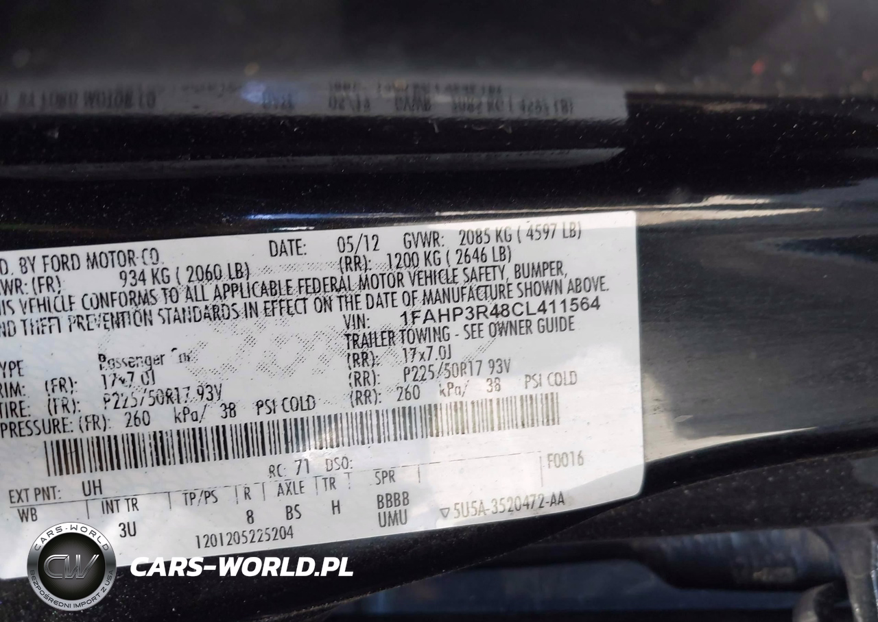 IAAI Nr: I-43360046 VIN: 1FAHP3R48CL411564 Port: Los Angeles, CA