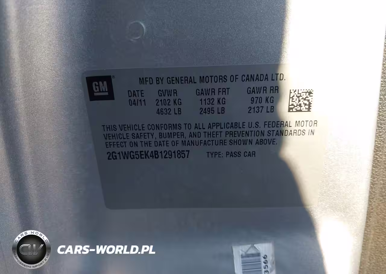 IAAI Nr: I-43424462 VIN: 2G1WG5EK4B1291857 Port: Houston, TX