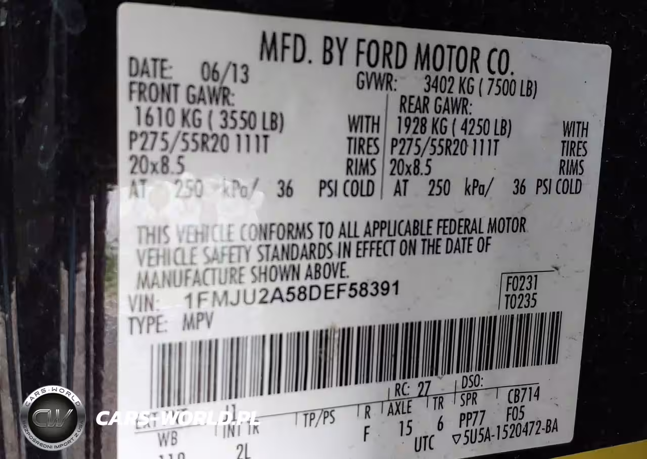 IAAI Nr: I-43442389 VIN: 1FMJU2A58DEF58391 Port: Elizabeth, NJ