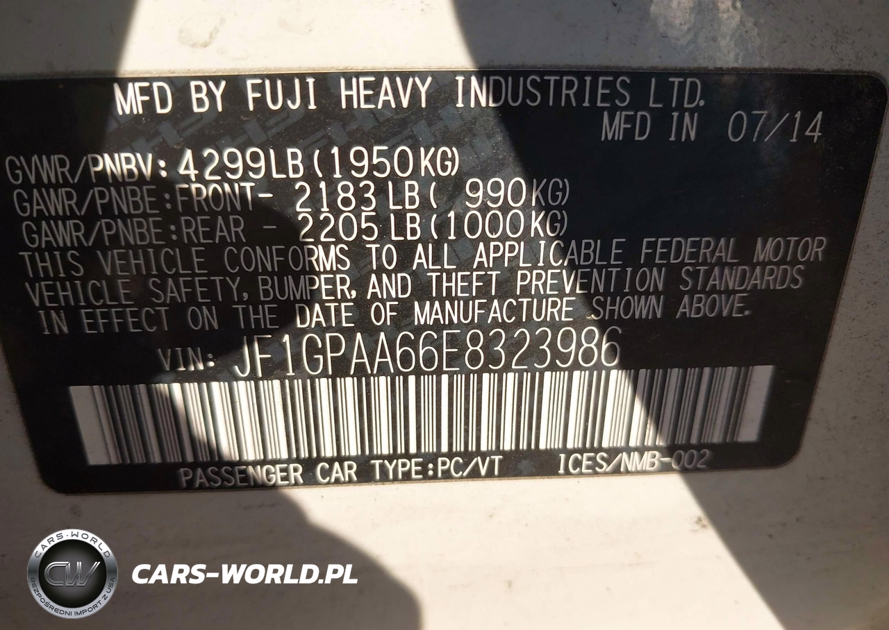 IAAI Nr: I-43471455 VIN: JF1GPAA66E8323986 Port: Elizabeth, NJ
