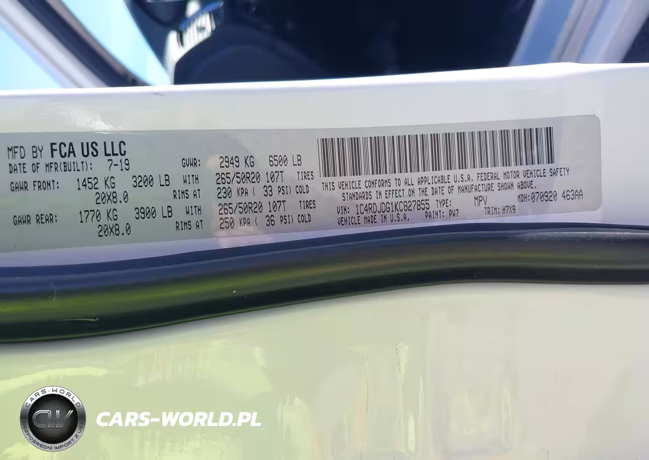 IAAI Nr: I-43524130 VIN: 1C4RDJDG1KC827855 Port: Los Angeles, CA