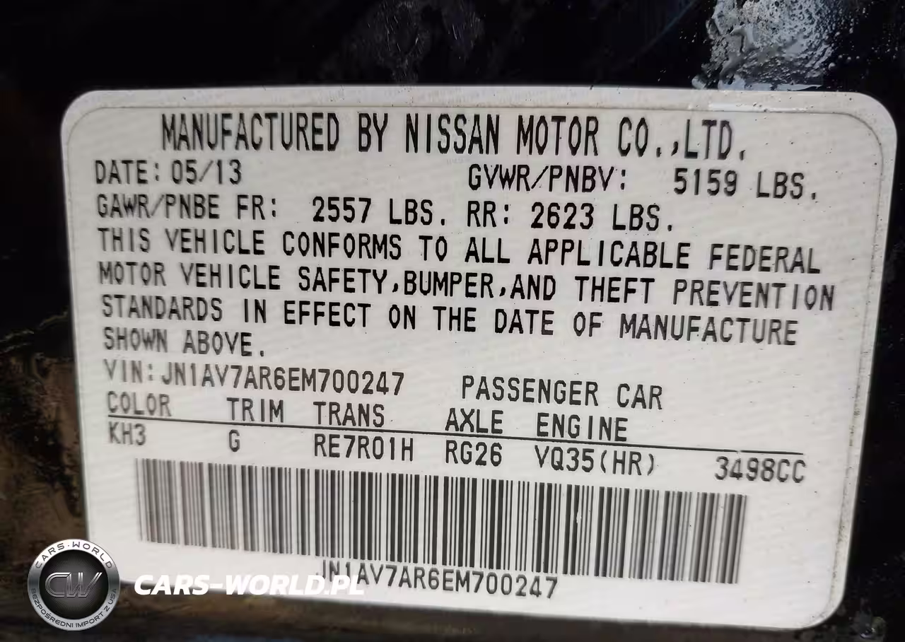 IAAI Nr: I-43537164 VIN: JN1AV7AR6EM700247 Port: Indianapolis, IN