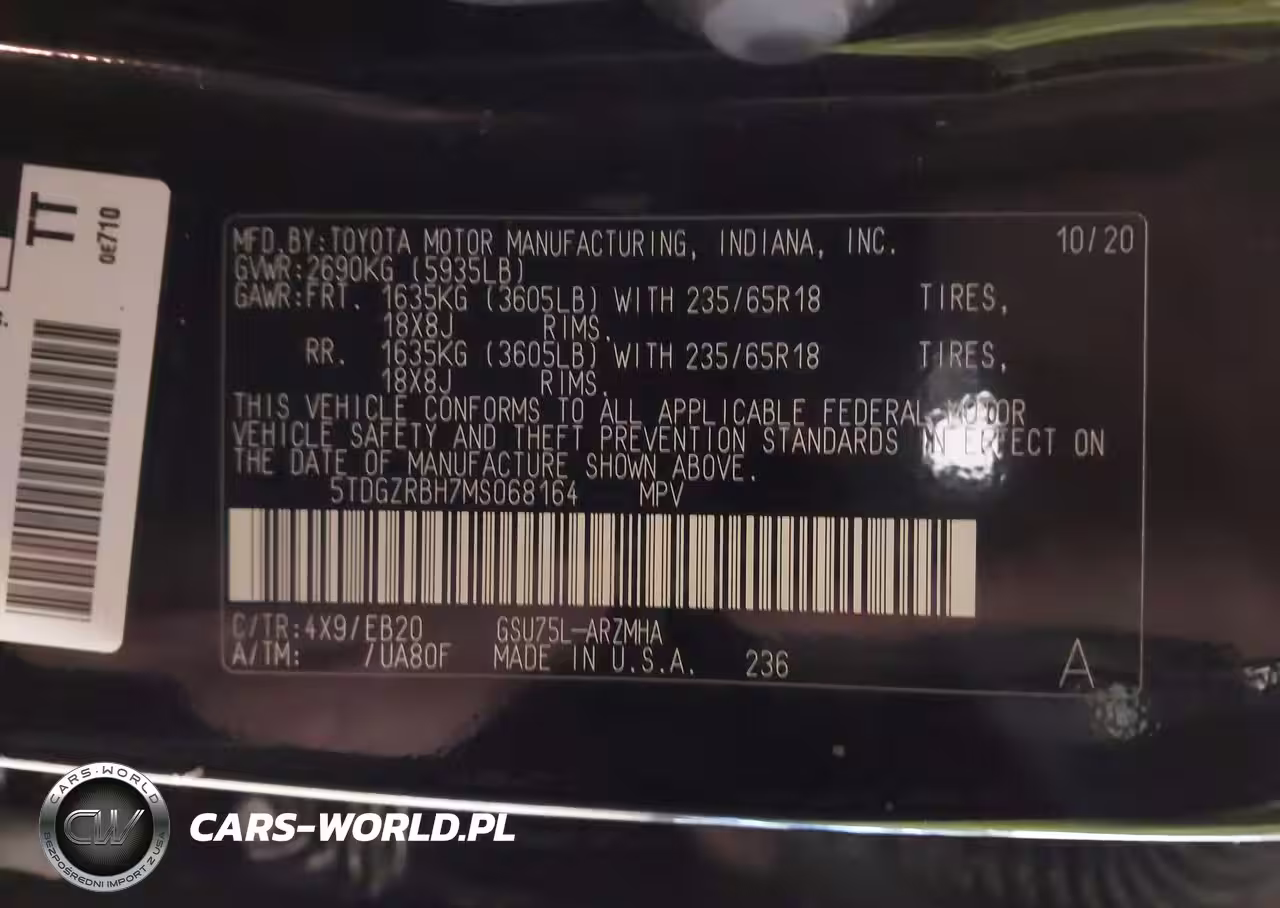 IAAI Nr: I-43591147 VIN: 5TDGZRBH7MS068164 Port: Elizabeth, NJ