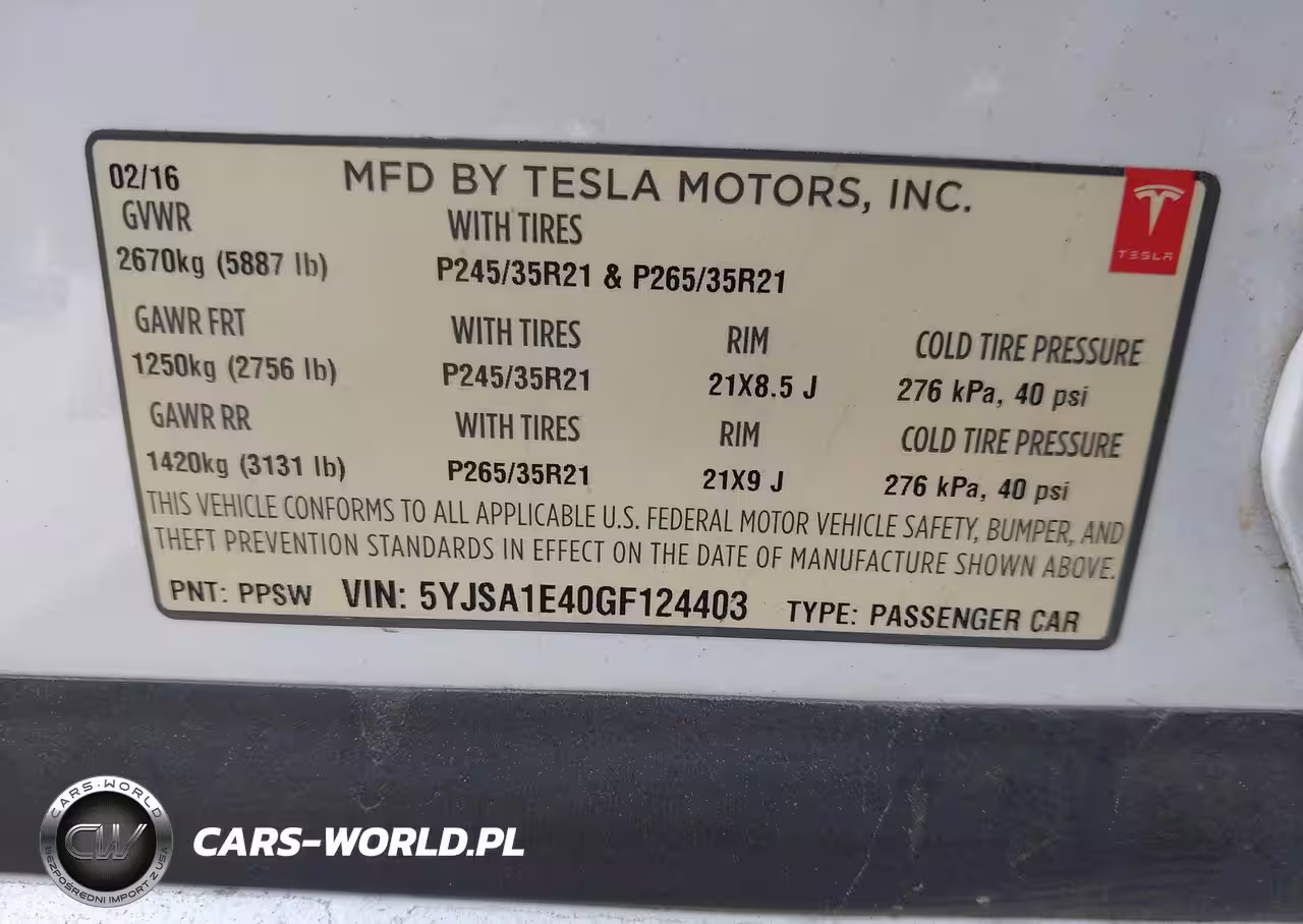 IAAI Nr: I-43598152 VIN: 5YJSA1E40GF124403 Port: Los Angeles, CA