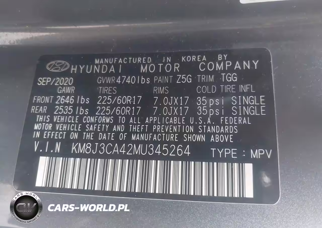 IAAI Nr: I-43660160 VIN: KM8J3CA42MU345264 Port: Elizabeth, NJ